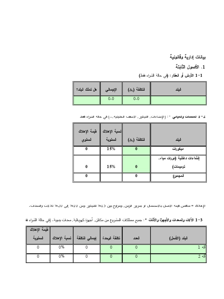 جاهزة للتحميل نموذج دراسة جدوى فارغة excel