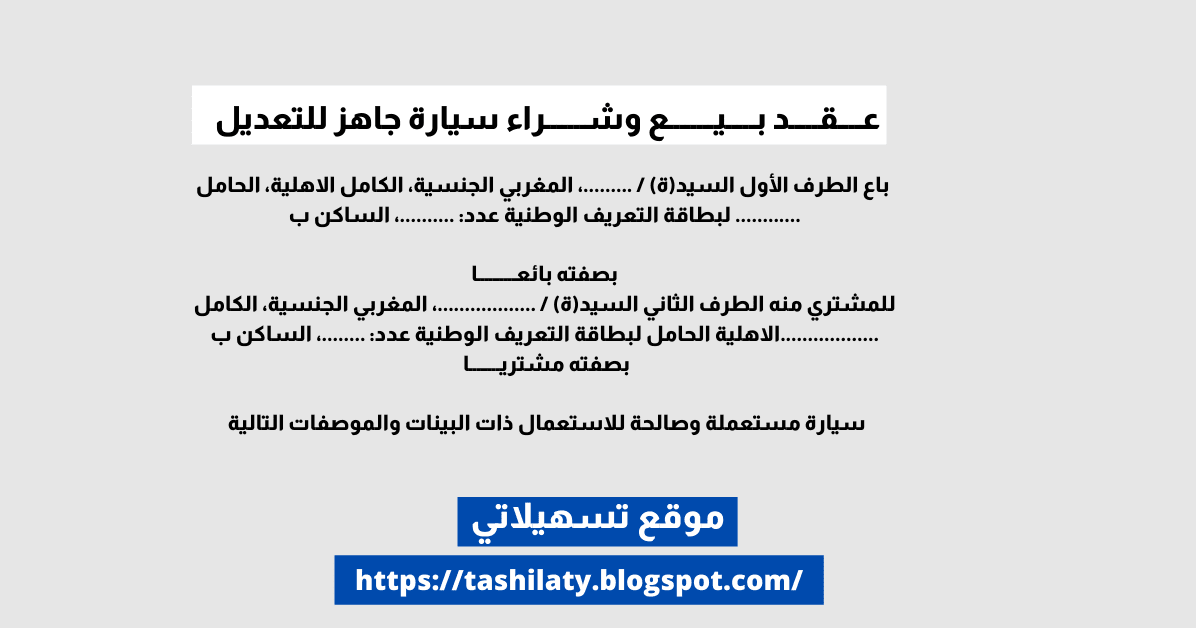 نموذج عقد بيع سيارة بالمغرب word احترافي